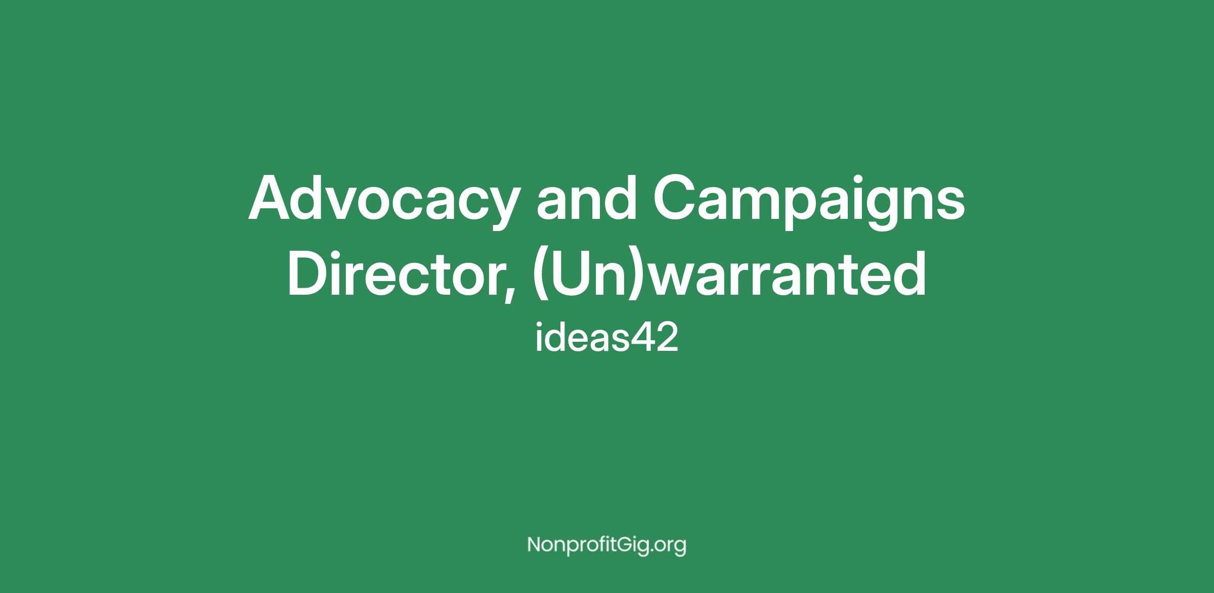 Reporting to the Managing Director, the Advocacy and Campaigns Director will be the architect and executor of (Un)warranted’s activities to create legislative and other policy changes that require statewide implementation of these solutions. This role requires someone who is talented at building relationships and messaging, who can balance big-picture thinking with learned technical expertise of our interventions to navigate policy change for greatest possible impact, and who can strategically execute and drive outcomes based on a clear understanding of the context and landscape. The Advocacy and Campaigns Director will set the direction of the advocacy work in alignment with (Un)warranted goals, be the primary liaison with state and federal stakeholders on policy matters, and be a leading voice for our evidence-base, cost-effective interventions.