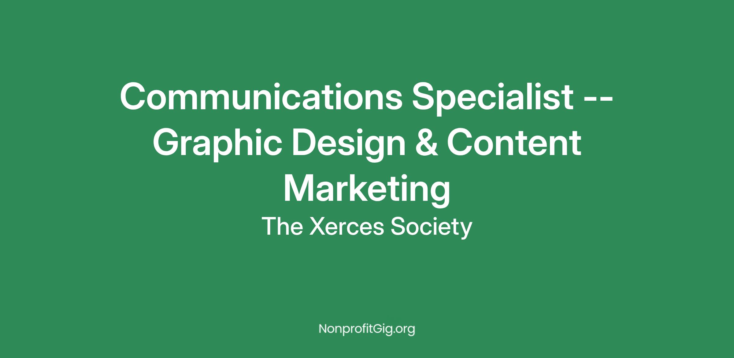 JOB TITLE: Communications Specialist -- Graphic Design & Content Marketing