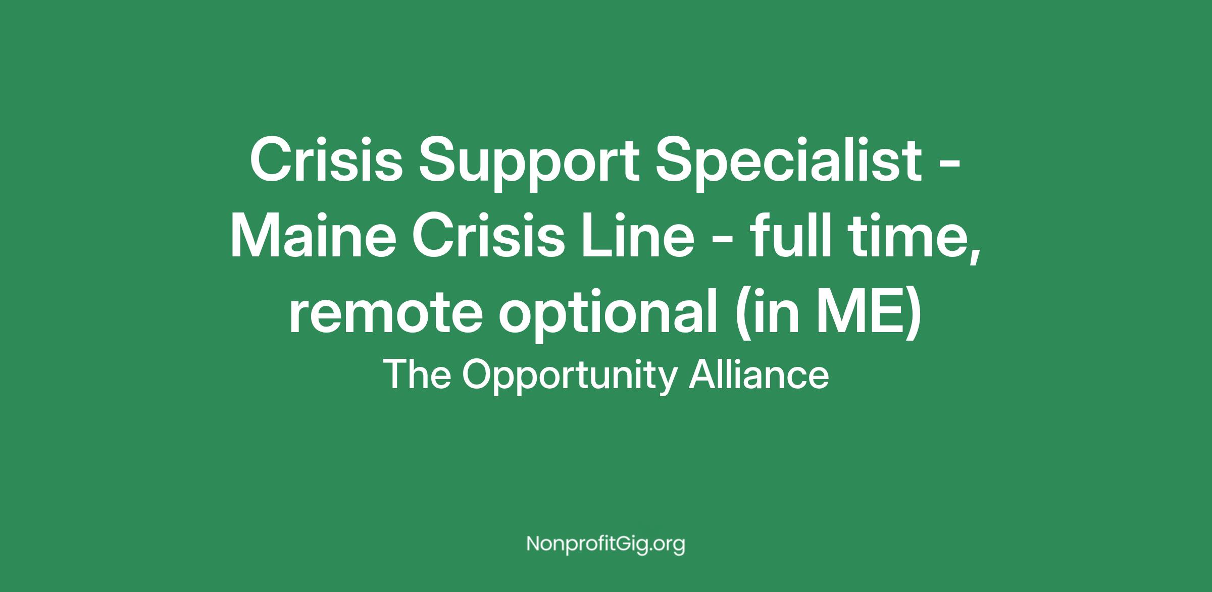 The Opportunity Alliance is hiring Full-Time Crisis Support Specialist(s) to join the team with the Maine Crisis Line (MCL).