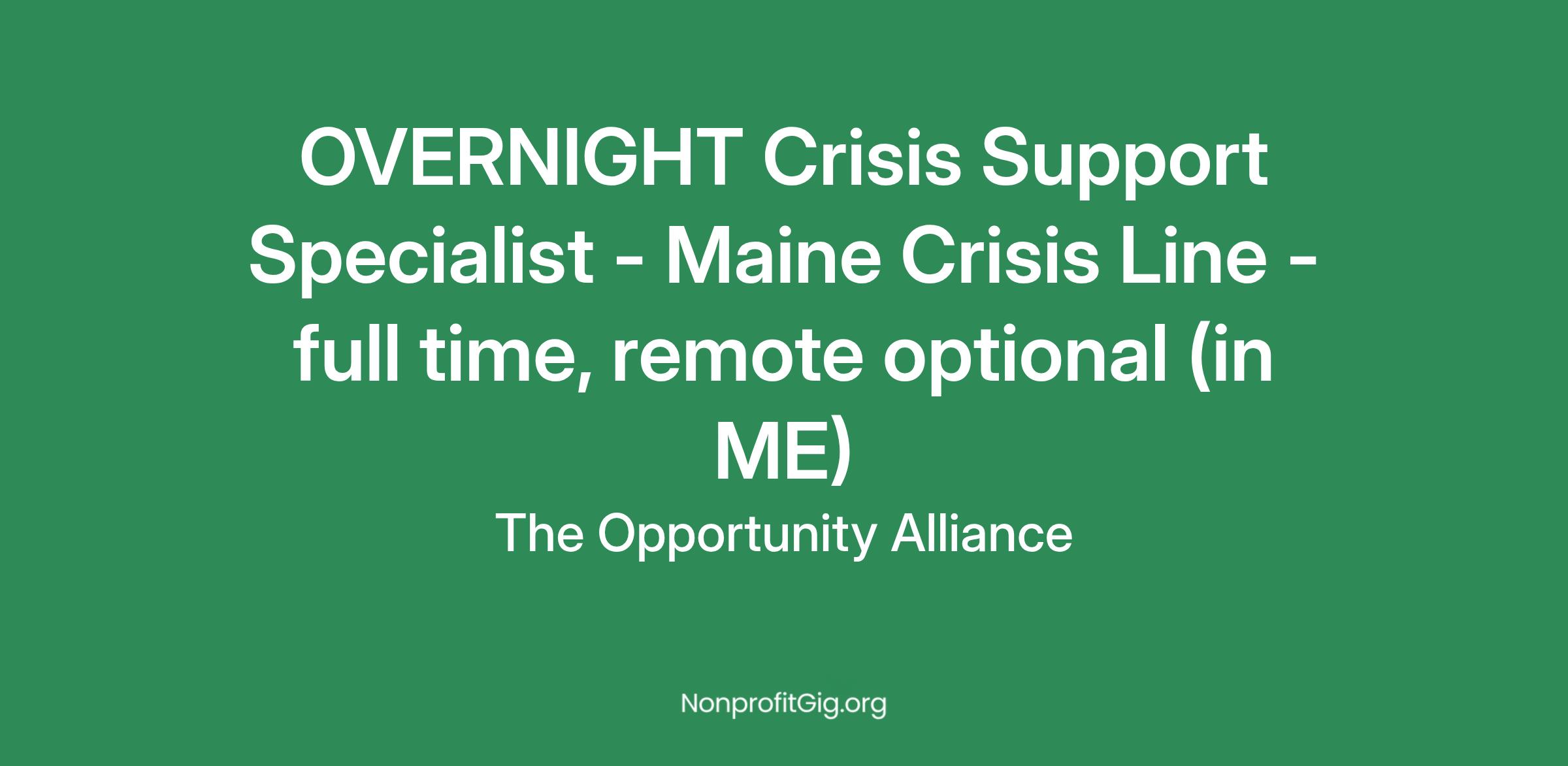 The Opportunity Alliance is hiring Full-Time Crisis Call Specialist(s) to join the team with the Maine Crisis Line (MCL).