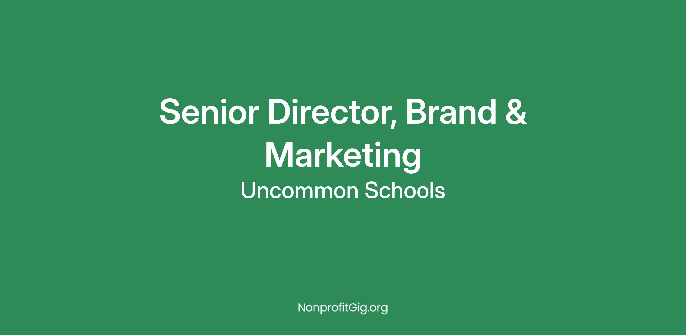 Uncommon Schools is seeking a Senior Director of Brand & Marketing to lead the organization’s brand and marketing strategy and ensure its mission and impact are powerfully represented across all audiences. This role will harness the power of Uncommon’s brand as a national leader in education, deploying best-in-class marketing across owned and paid channels to elevate awareness, engagement, and loyalty.